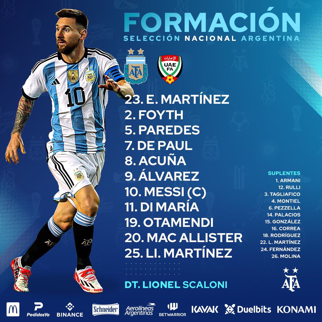 Max Kay On Twitter Argentina Announces Line Up For Their Friendly Game Against Uae Messi And Di Maria Lead The Way What Do You Think The Scores Will Be Drop Your Prediction In